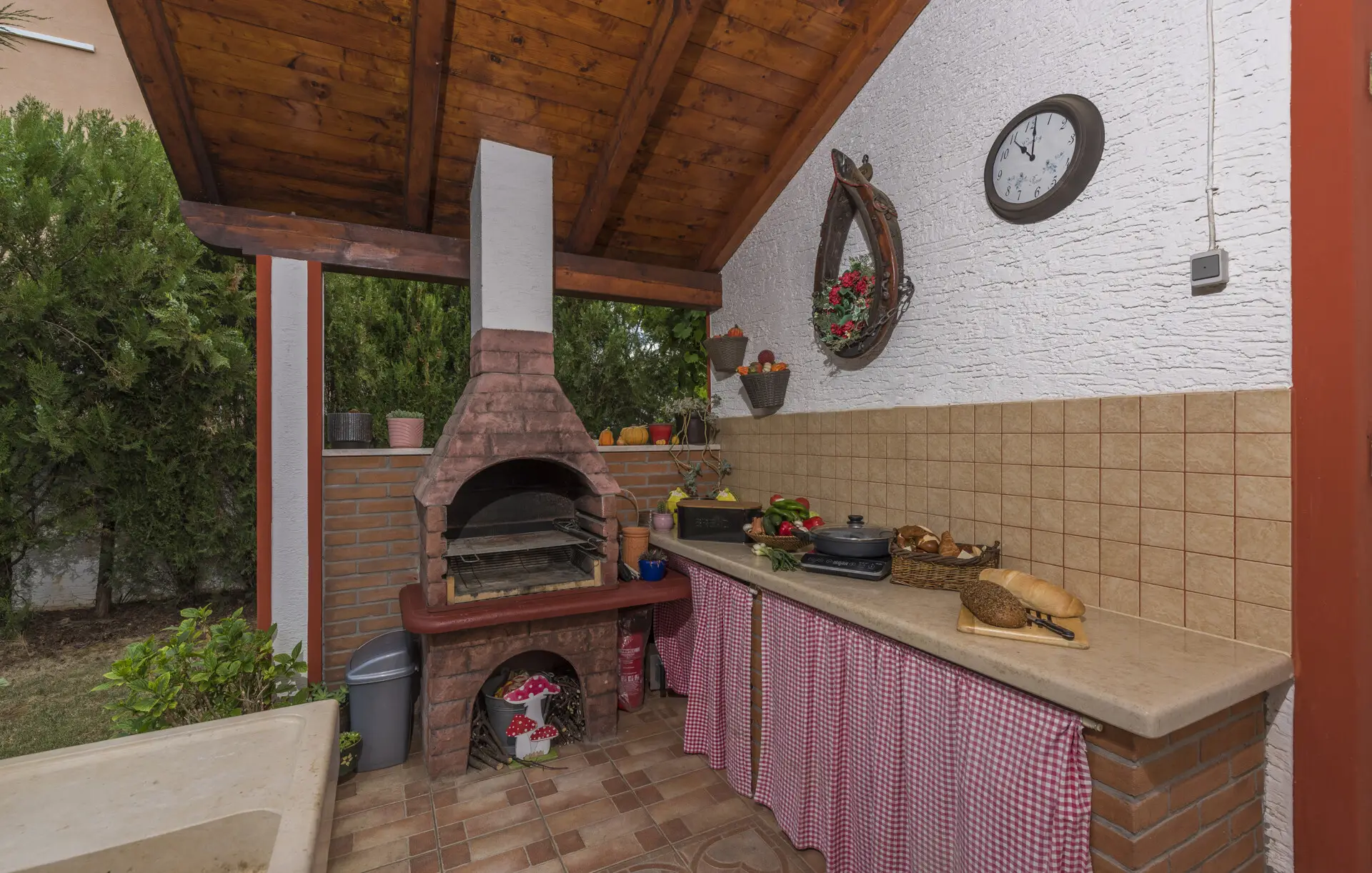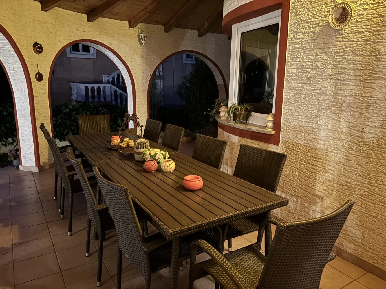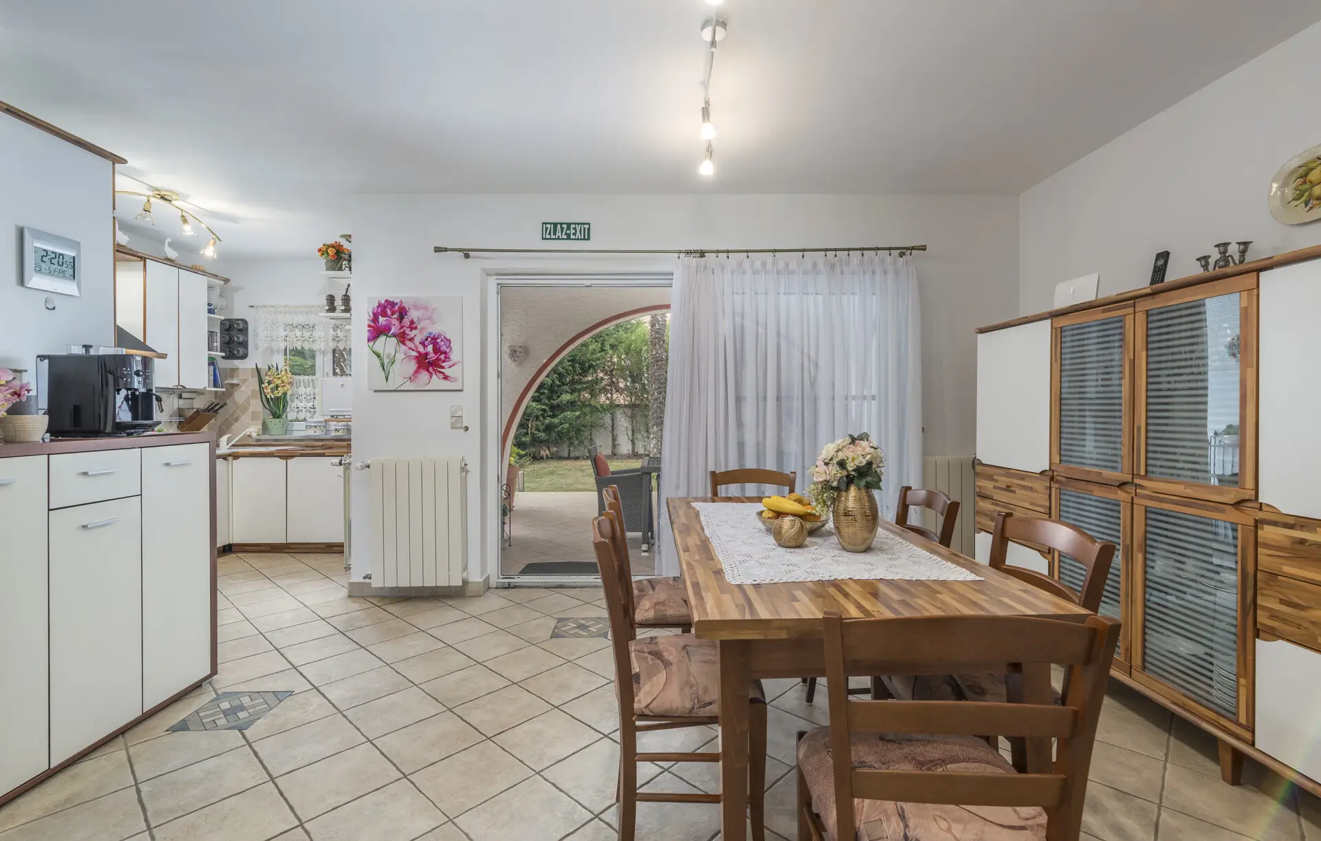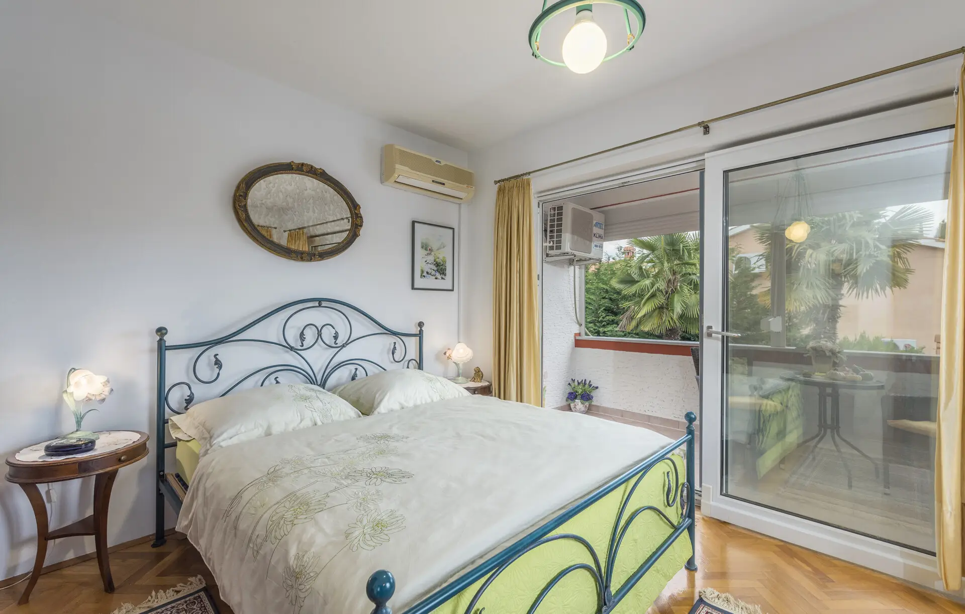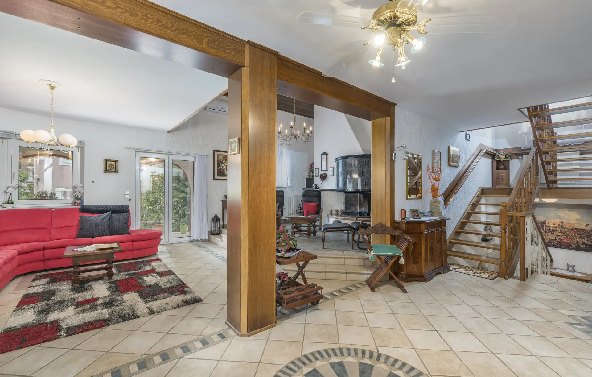 Surrounded by an idyllic, spacious, well-kept garden with a veritable floral oasis, Villa Aurea is located near the tourist center of Porec. This property can accommodate up to 8 guests, making it ideal for a vacation with friends or family. The garden, with natural shade provided by the beautiful, oversized palm trees, also features a seasonal private pool with sun loungers and a relaxation bed. You can prepare delicious grilled meals in the summer kitchen. The interior of the villa is exceptional. The open-plan ground floor houses the living room, a well-equipped kitchen, and a dining area. This area also includes a bedroom and a bathroom. From the kitchen, you have direct access to the covered terrace, where you can also enjoy your meals. Upstairs, there are two additional bedrooms, each with a balcony and a bathroom. A separate apartment with a living and dining area, a bedroom, a bathroom, and a balcony is ideal for guests who prefer more privacy. Another highlight is the villa’s tower, which offers stunning views of the Adriatic Sea. The property is fully air-conditioned. The beach is 2.5 km away. The a la carte restaurant is 0.5 km away. The market is 0.5 km away. Two garages and two additional parking spaces are available on the fully fenced property. We wish you a relaxing holiday at Villa Vallis Aurea.