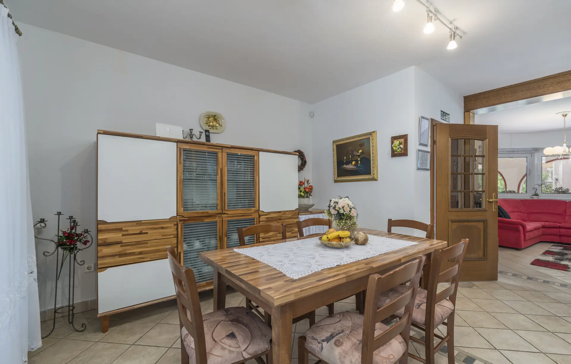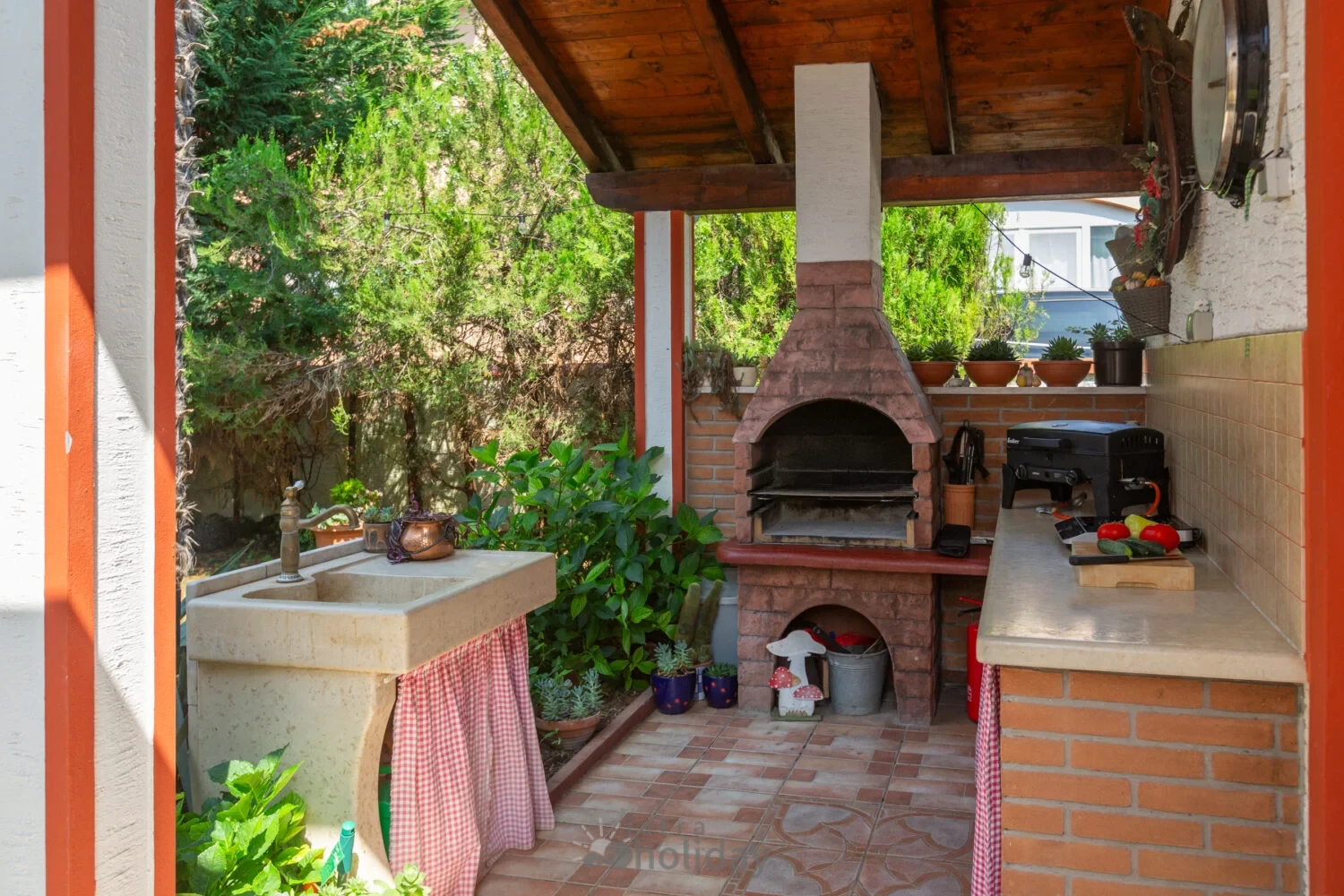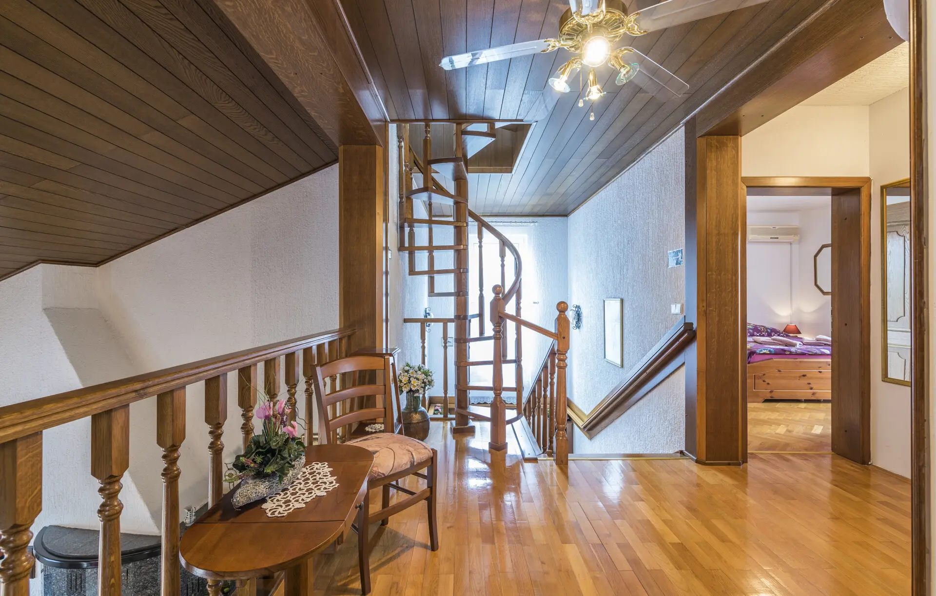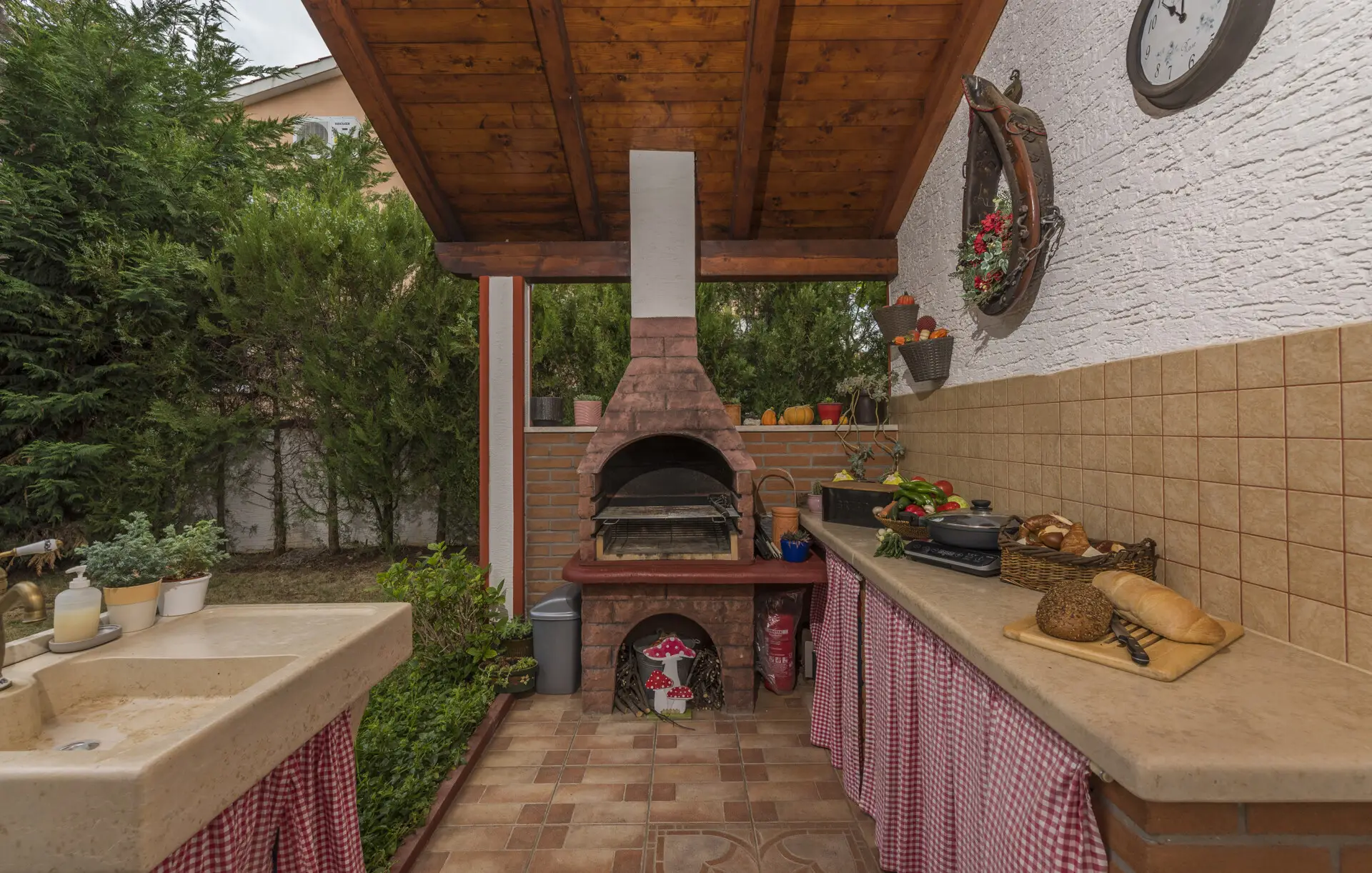 Surrounded by an idyllic, spacious, well-kept garden with a veritable floral oasis, Villa Aurea is located near the tourist center of Porec. This property can accommodate up to 8 guests, making it ideal for a vacation with friends or family. The garden, with natural shade provided by the beautiful, oversized palm trees, also features a seasonal private pool with sun loungers and a relaxation bed. You can prepare delicious grilled meals in the summer kitchen. The interior of the villa is exceptional. The open-plan ground floor houses the living room, a well-equipped kitchen, and a dining area. This area also includes a bedroom and a bathroom. From the kitchen, you have direct access to the covered terrace, where you can also enjoy your meals. Upstairs, there are two additional bedrooms, each with a balcony and a bathroom. A separate apartment with a living and dining area, a bedroom, a bathroom, and a balcony is ideal for guests who prefer more privacy. Another highlight is the villa’s tower, which offers stunning views of the Adriatic Sea. The property is fully air-conditioned. The beach is 2.5 km away. The a la carte restaurant is 0.5 km away. The market is 0.5 km away. Two garages and two additional parking spaces are available on the fully fenced property. We wish you a relaxing holiday at Villa Vallis Aurea.