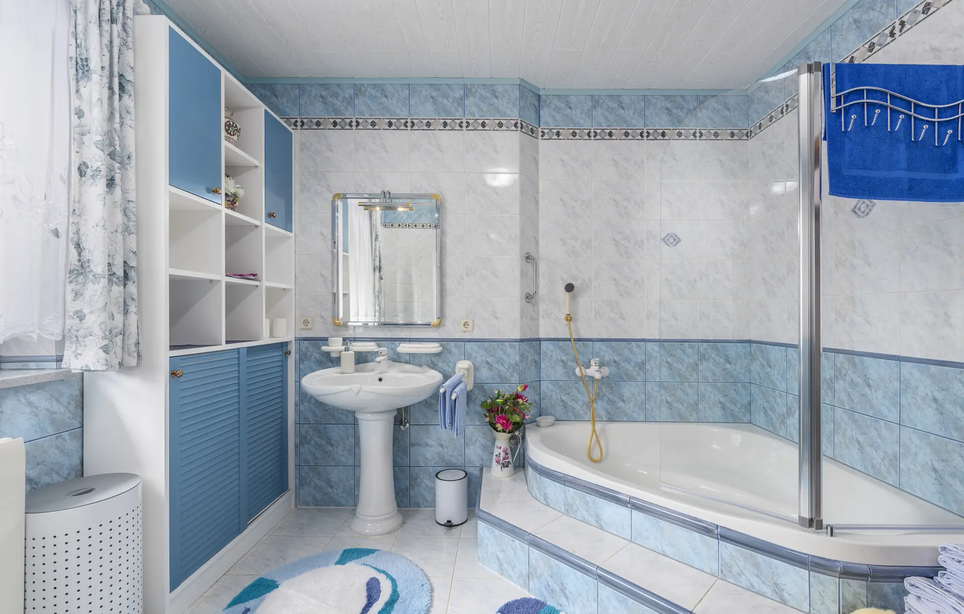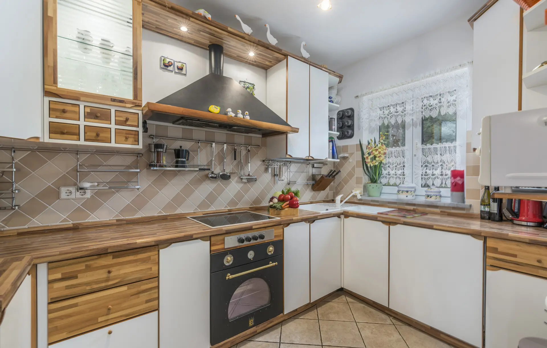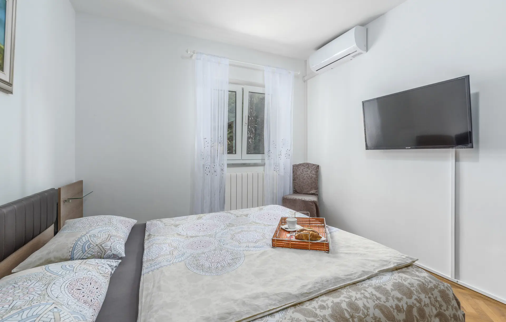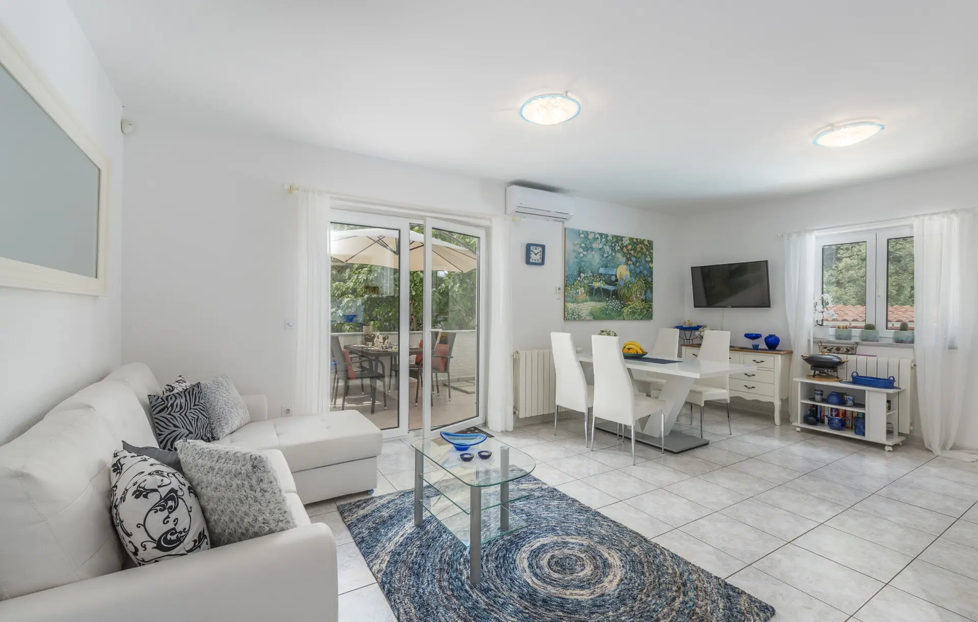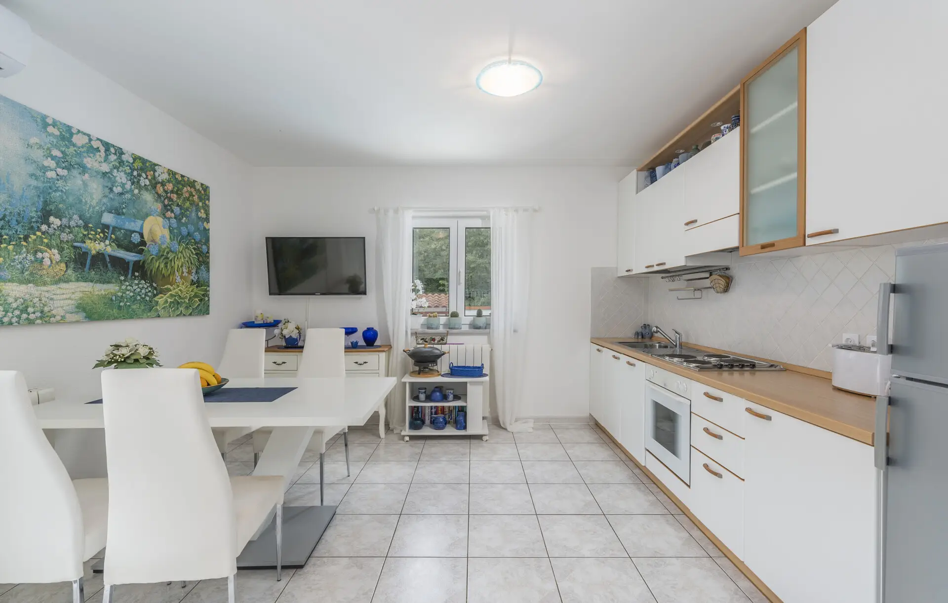 Surrounded by an idyllic, spacious, well-kept garden with a veritable floral oasis, Villa Aurea is located near the tourist center of Porec. This property can accommodate up to 8 guests, making it ideal for a vacation with friends or family. The garden, with natural shade provided by the beautiful, oversized palm trees, also features a seasonal private pool with sun loungers and a relaxation bed. You can prepare delicious grilled meals in the summer kitchen. The interior of the villa is exceptional. The open-plan ground floor houses the living room, a well-equipped kitchen, and a dining area. This area also includes a bedroom and a bathroom. From the kitchen, you have direct access to the covered terrace, where you can also enjoy your meals. Upstairs, there are two additional bedrooms, each with a balcony and a bathroom. A separate apartment with a living and dining area, a bedroom, a bathroom, and a balcony is ideal for guests who prefer more privacy. Another highlight is the villa’s tower, which offers stunning views of the Adriatic Sea. The property is fully air-conditioned. The beach is 2.5 km away. The a la carte restaurant is 0.5 km away. The market is 0.5 km away. Two garages and two additional parking spaces are available on the fully fenced property. We wish you a relaxing holiday at Villa Vallis Aurea.