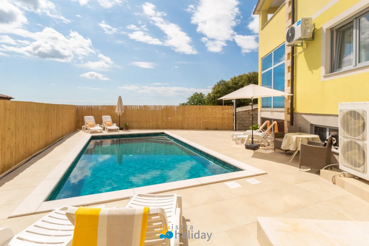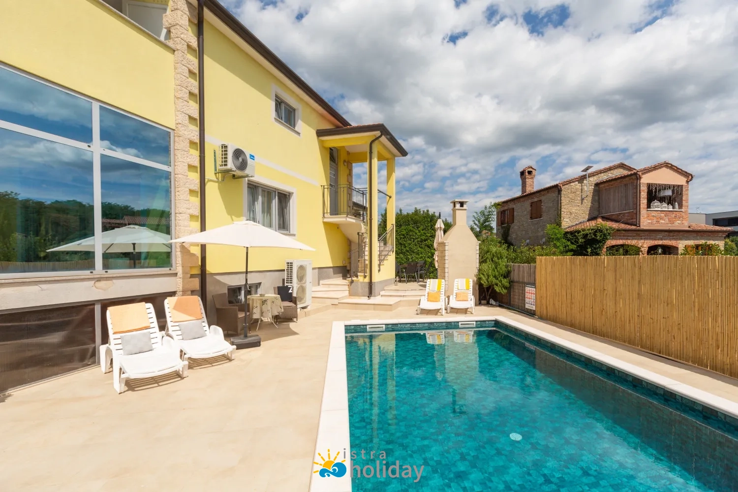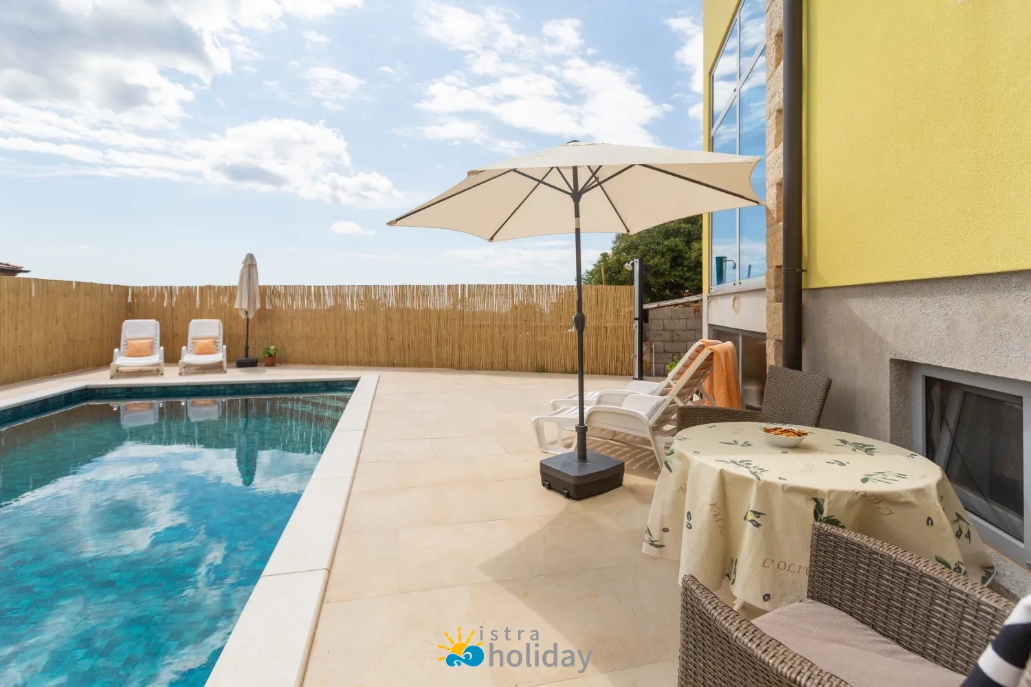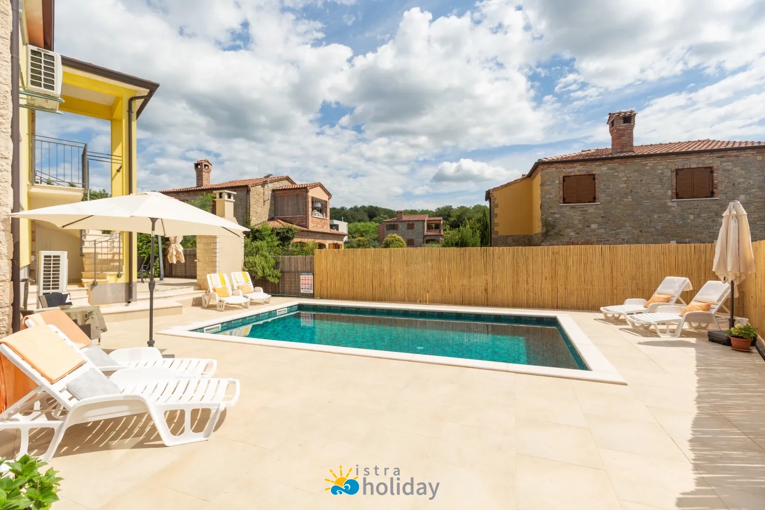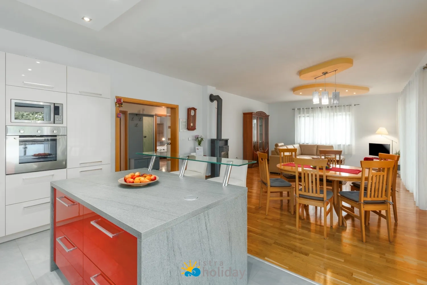 Questa villa, situata lontano dal trambusto cittadino, offre la massima privacy. I visitatori possono godersi tranquille passeggiate, gite in bicicletta o escursioni, esplorando i dintorni e vivendo la natura istriana nel vero senso della parola.