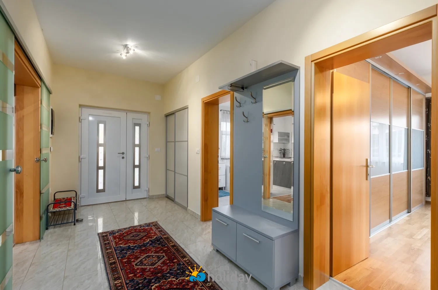 Villa Sandra, situata nell’idilliaca Kaštelir, offre una fuga perfetta dallo stress quotidiano per 6 persone o due famiglie. A soli 10 minuti di auto da Parenzo, è il luogo ideale per rilassarsi nella splendida cornice istriana.