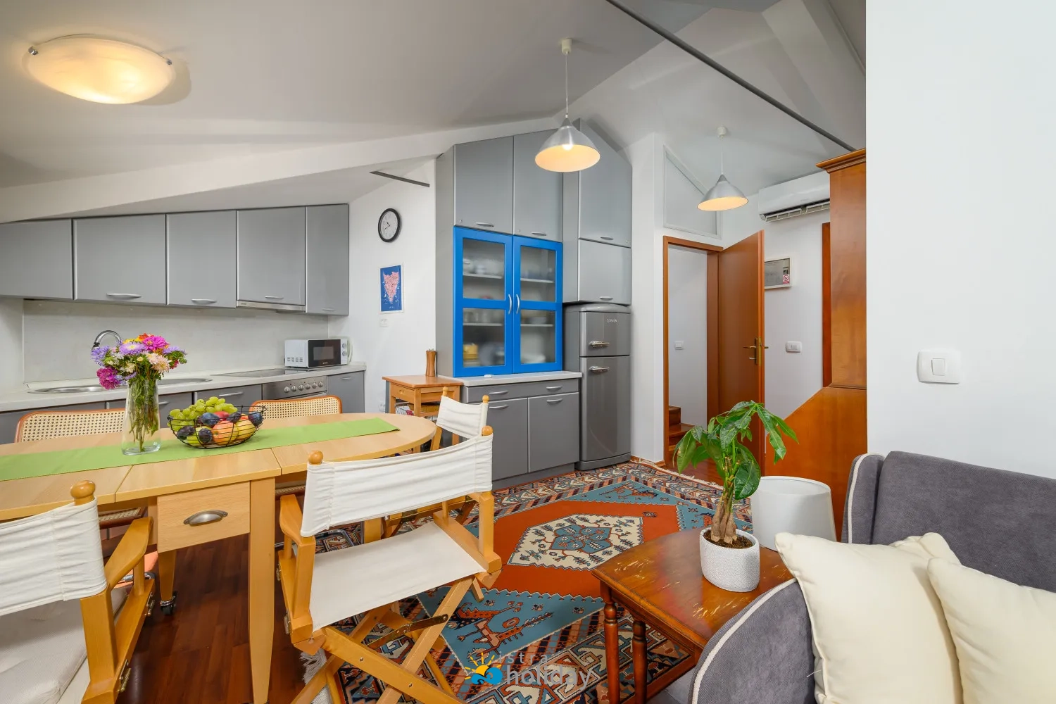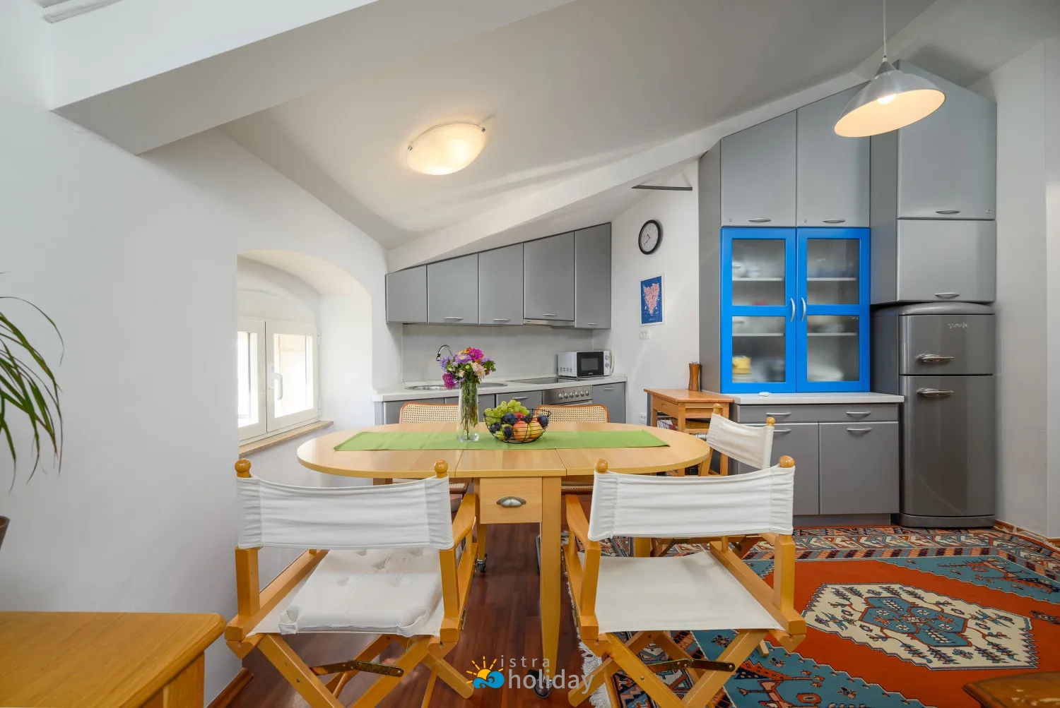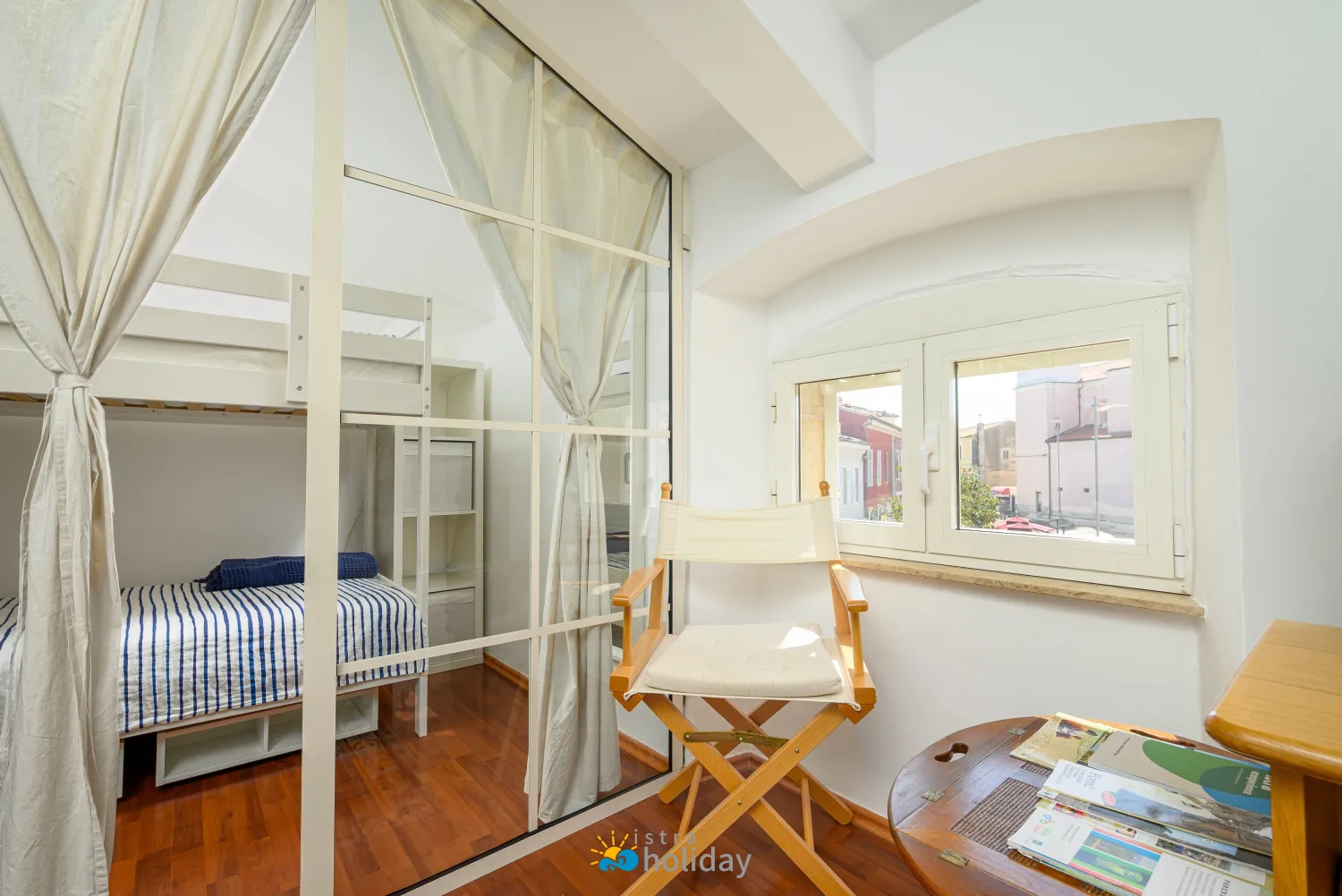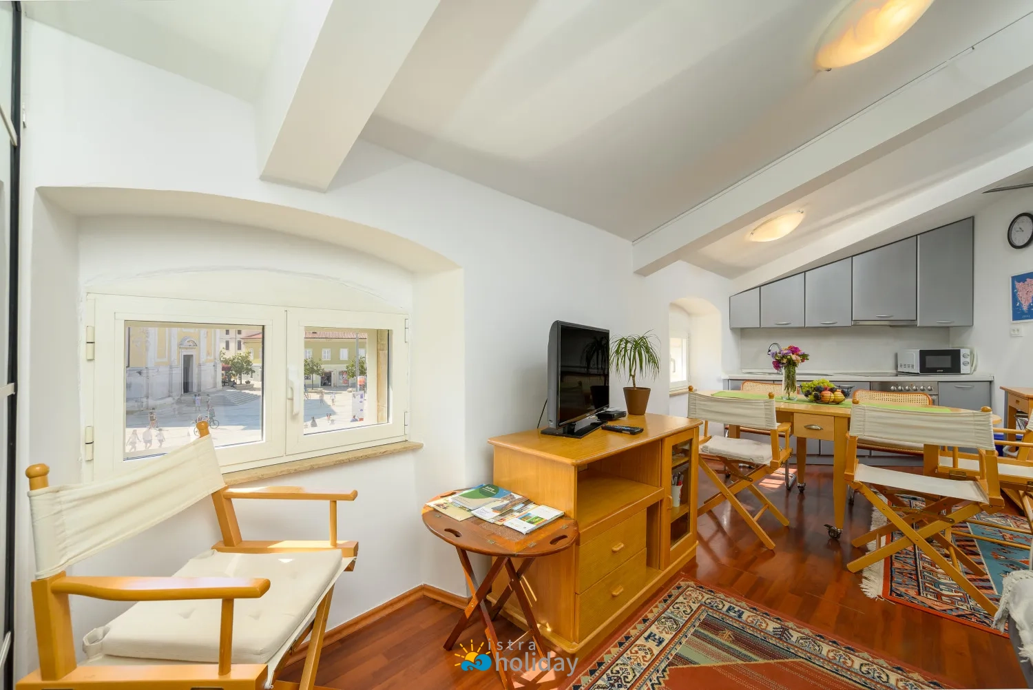 Kada je u pitanju pronalaženje savršenog smještaja za mali obiteljski odmor, Dida i Nonna Piazza View Apartman u Poreču je idealan izbor. Smješten u staroj povijesnoj zgradi s pogledom na glavni porečki trg, ovaj šarmantni apartman nudi ne samo vrhunsku lokaciju, već i ugodan i udoban boravak za goste svih dobnih skupina, kada uđete u Apartman Dida i Nonna Piazza, dočekat će vas topla i gostoljubiva atmosfera koja odražava bit porečkog Starog grada. Apartman se nalazi na najvišem katu zgrade i nudi jedinstveno i intimno okruženje za vaš boravak. Interijer je ukusno uređen, s potpuno opremljenom kuhinjom u kojoj možete pripremati ukusna jela i udobnom blagovaonicom u kojoj možete uživati sa svojim najdražima.