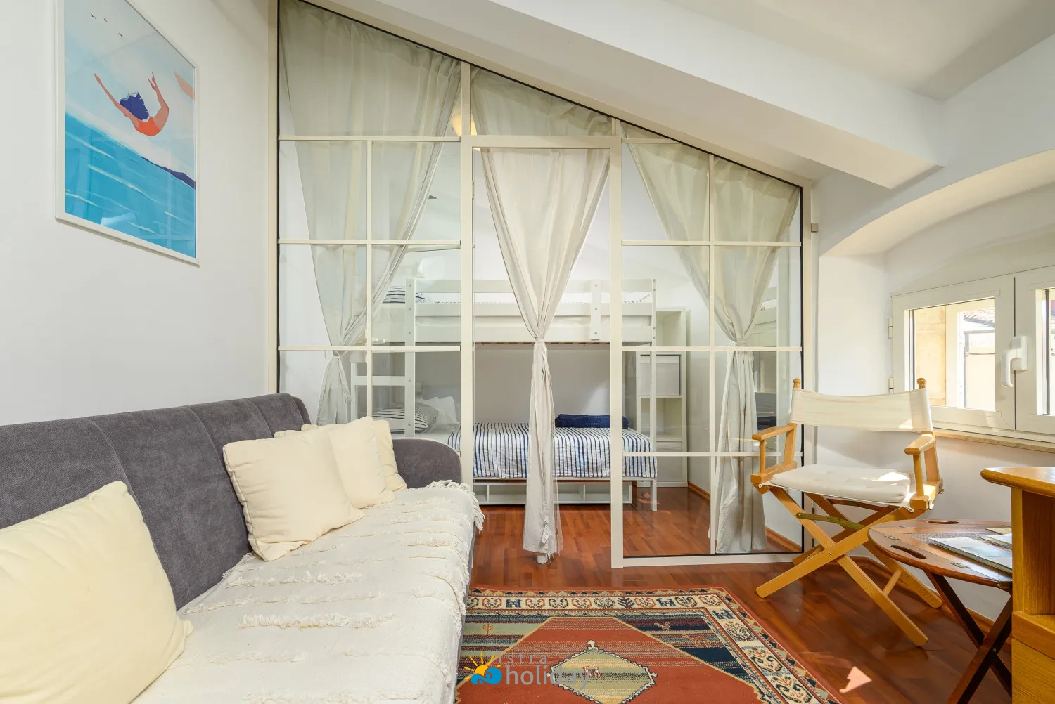 Todella viihtyisä ja mukava huoneisto, jolla on erinomainen ja keskeinen sijainti. Kerrossängyn alavuode sopi hyvin myös aikuisen nukuttavaksi.