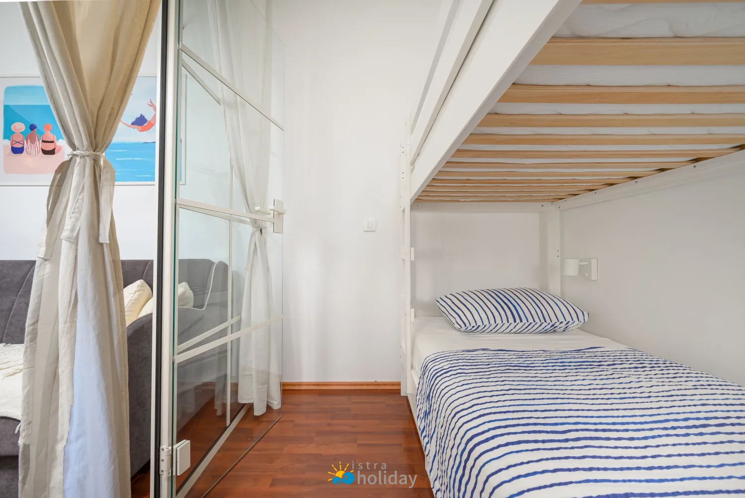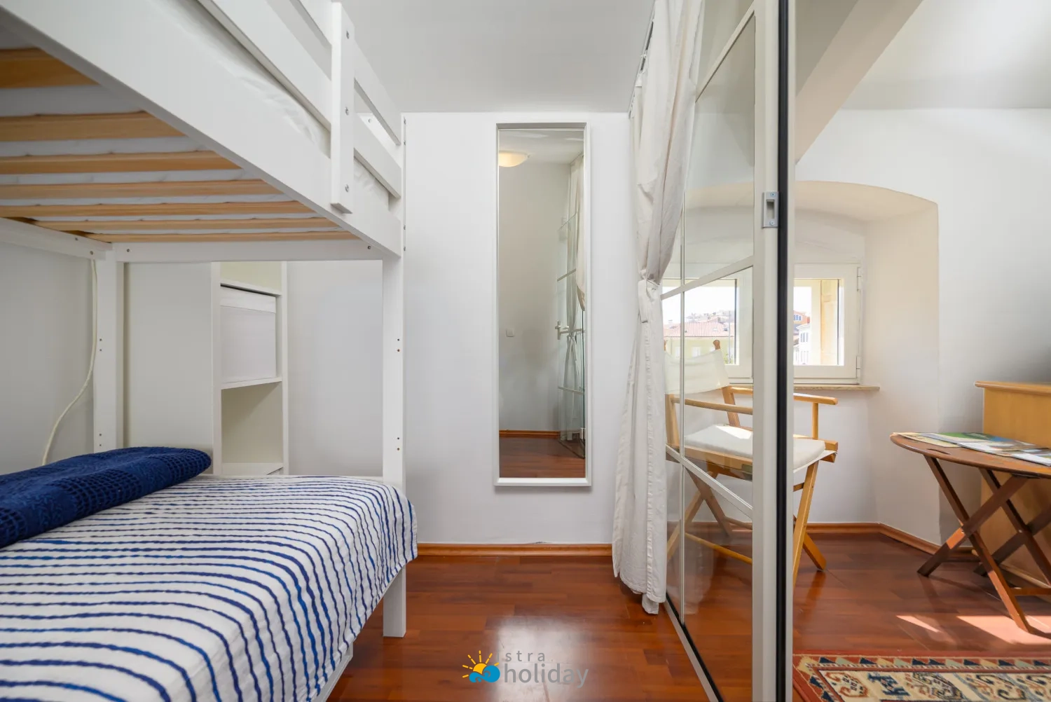 Apartman ima dvokrevetnu sobu za roditelje i dječju sobu s krevetima na kat, što ga čini savršenim izborom za mali obiteljski odmor. Apartman nudi i pogled na glavni trg, omogućujući vam da uronite u živahnu atmosferu Poreča, a da ne napuštate udobnost svog doma. Za samo nekoliko minuta hoda lako ćete doći do porečke obale i provesti opuštajući dan uz more. Stari grad je također nadohvat ruke, što vam omogućuje ležerno istraživanje šarmantnih ulica, povijesnih znamenitosti i lokalnih trgovina. Nakon dana istraživanja i avanture, vratite se u Dida i Nonna Piazza View Apartman da se opustite i opustite. Bilo da uživate u šalici kave za stolom s pogledom na glavni trg ili se sklupčate uz knjigu u udobnom dnevnom boravku, ovaj apartman nudi savršeno utočište za vaš odmor.